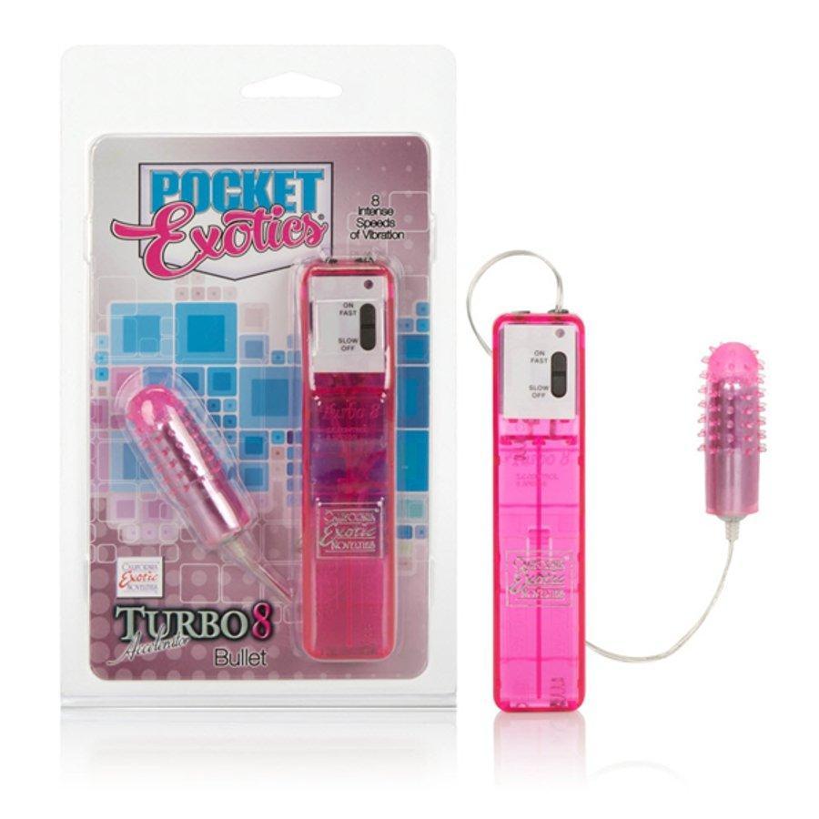 Rev-up your orgasmic potential with this Turbo Accelerator Bullet! The smooth and sleek bullet itself is covered with a removable jelly sleeve covered in lots of textured nubs and ticklers that are ideal for clitoral stimulation. There are 8 levels of powerful and precise stimulation to explore, controlled by a handheld remote with a simple push button to increase and decrease as desired. Use for self-pleasure or share the sensations with a playmate during other encounters!